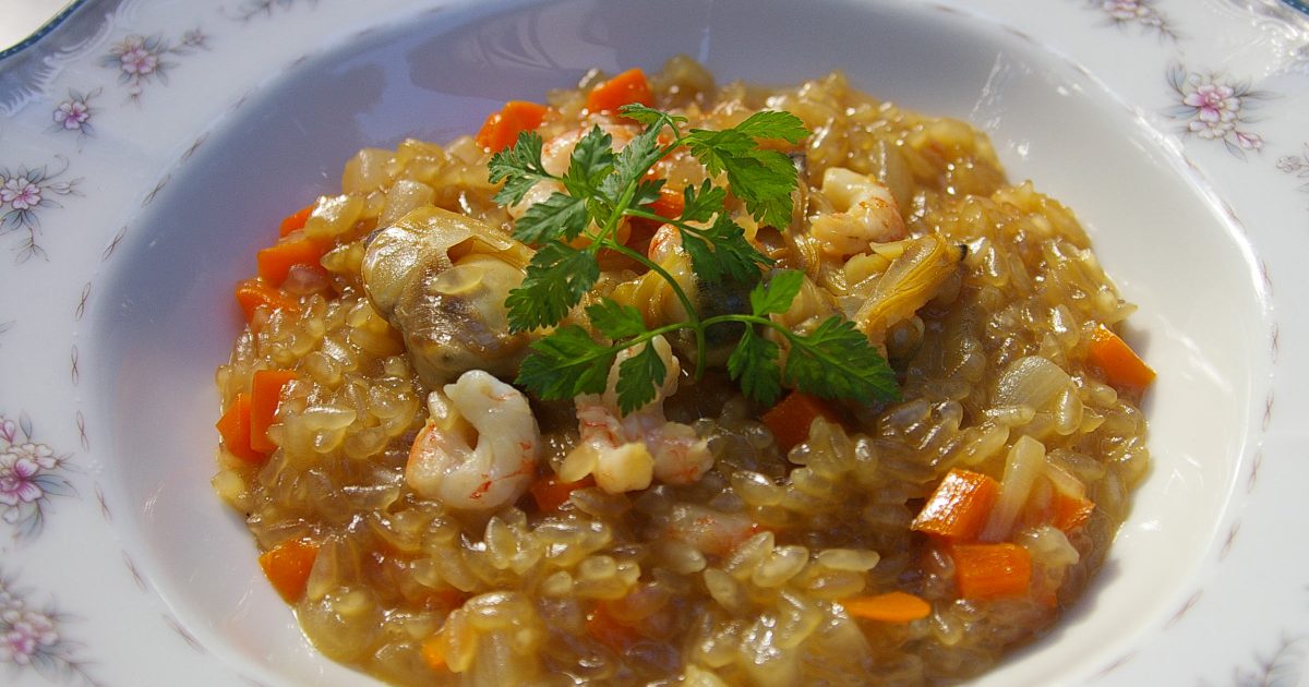 でんぷん米と魚介のリゾット