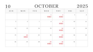 10月の営業日のご案内です。